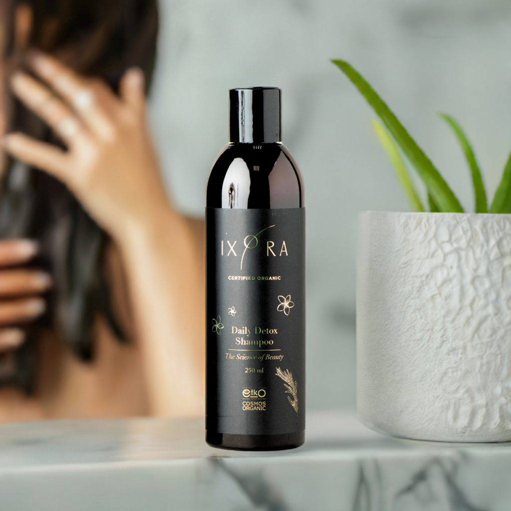 Sulfate-free, silicone-free detox shampoo infused with clinically approved natural ingredients, specifically formulated to combat oily scalp, dandruff, and hair loss.